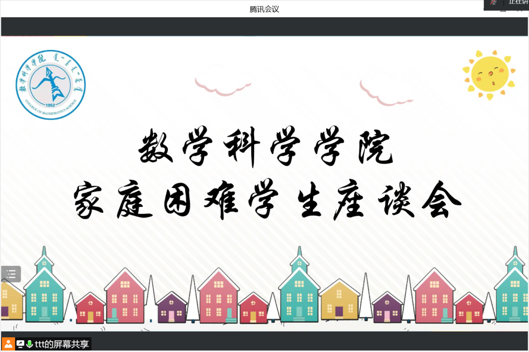 为了更好地倾听学生心声,更详细地了解家庭经济困难学生的学习和生活状况,同时帮助其他学生了解资助政策,数学科学华体会(中国)于6月13日组织开展线上家庭经济困难学生座谈会。本次座谈会邀请到研究生、本科生共五位受资助的家庭困难学生代表。