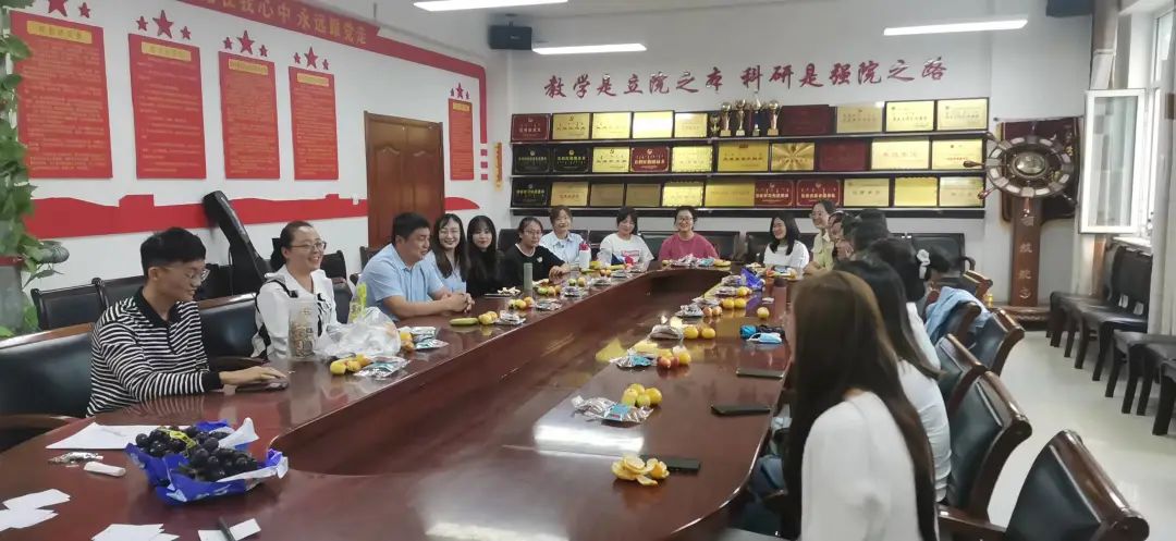 在华体会(中国)楼的会议室里,22级研究生欢聚一堂,副书记、副院长季建光老师和学就办副主任刘沙沙老师代表华体会(中国)向研究生送来中秋节的慰问。