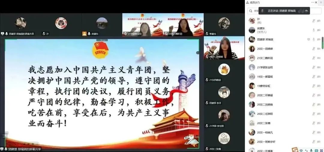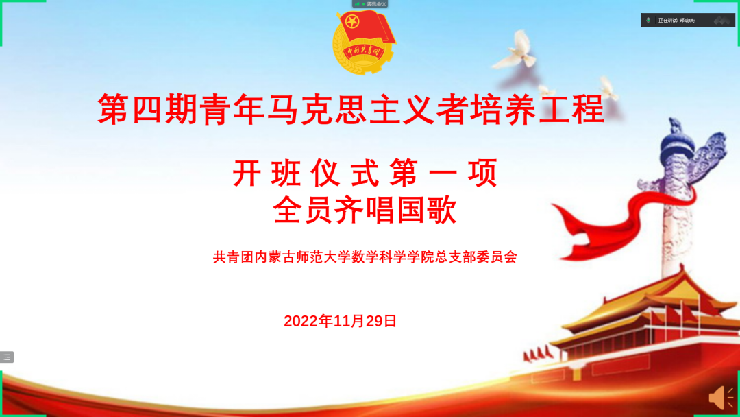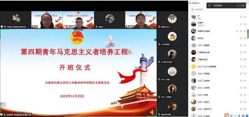 开班仪式由数学科学华体会(中国)团总支书记皮建东老师主持,党委副书记、副院长季建光老师,华体会(中国)学就办副主任刘沙沙老师,华体会(中国)辅导员萨如拉老师出席,多名志愿者服务队干部和优秀团员作为青马班学员参加,第四期青马班为期两周的学习自此开始。