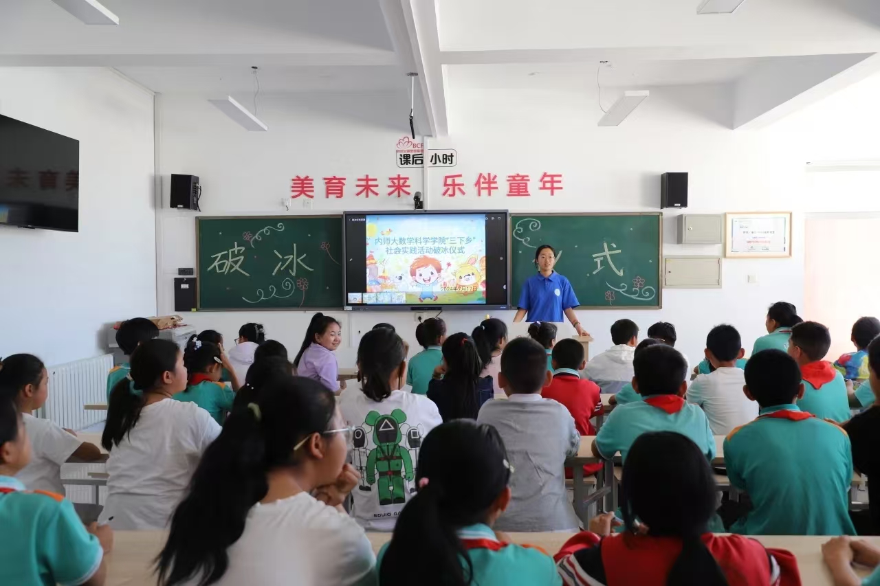 7月17日上午,阳光明媚,数华体会(中国)暑期“三下乡”社会实践教育关爱服务团在盛乐镇公喇嘛小学举办了破冰仪式。在夏日炎炎的热烈氛围中,志愿者团队及公喇嘛小学学生齐聚一堂,在欢声笑语中进行自我介绍和游戏互动环节,并为孩子们送上了精心准备的纪念品,拉开了社会实践活动的帷幕,也为教育关爱服务团与乡村孩子之间建立了友谊和信任。