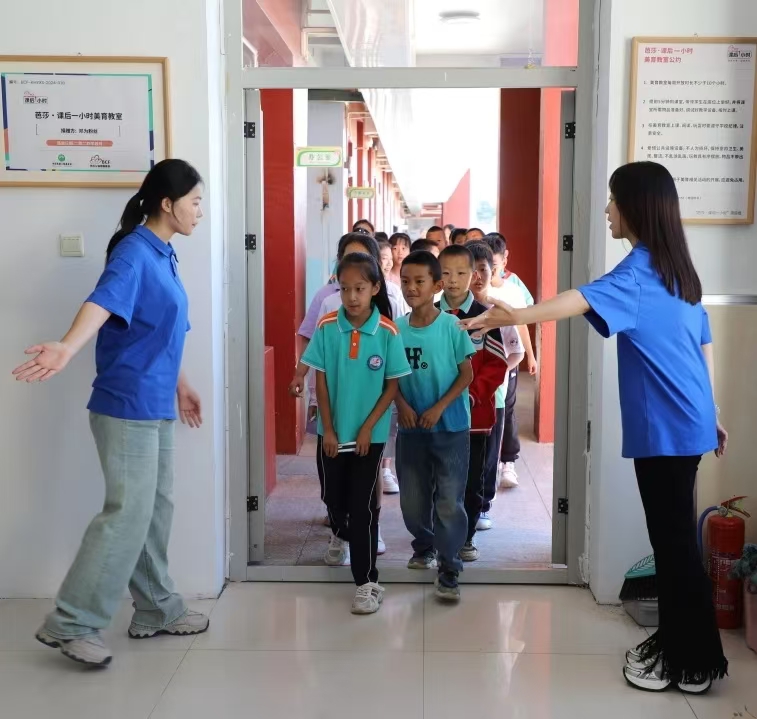 教育关爱服务团志愿者们提前设计了丰富多彩的课程。数学课上,针对不同年级教授了位置与方向、简易方程等内容,并将生活素材融入教学,使孩子们感受到数学与生活的密切联系,体验学数学、用数学的乐趣。同时结合生活中的事例,围绕用火用电、交通出行、防溺水以及饮食等方面内容,为同学们进行了暑期安全知识教育,提高了同学们安全意识和能力。