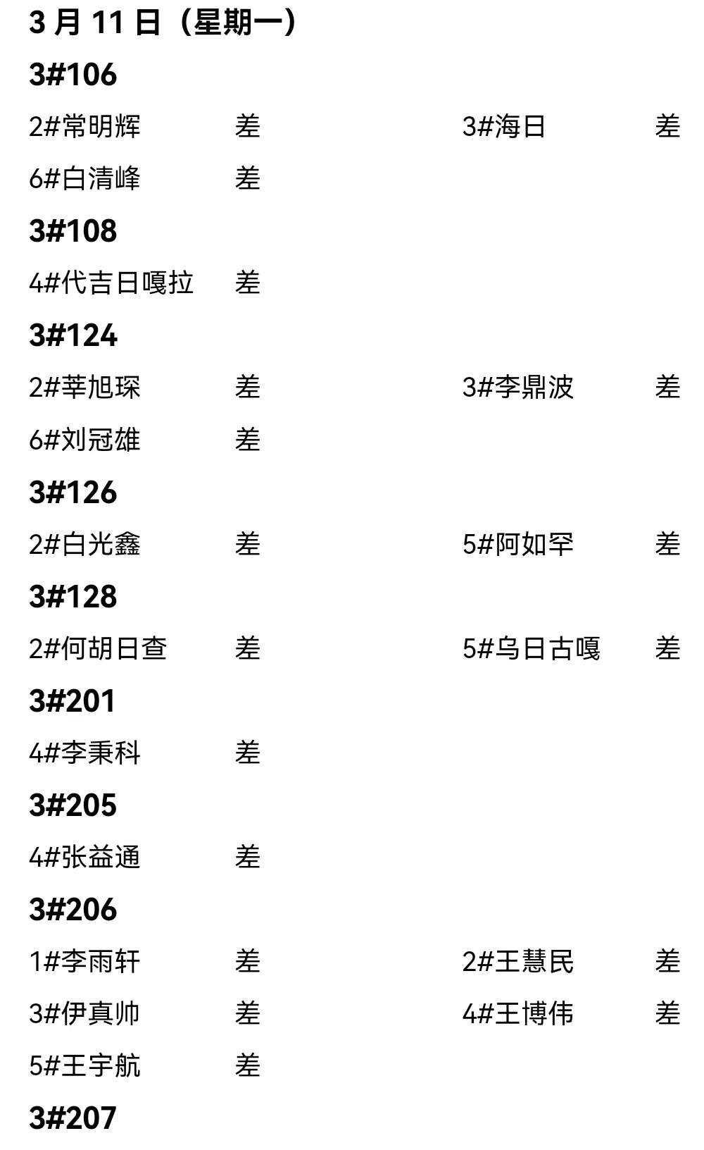 第三周夜不归宿情况