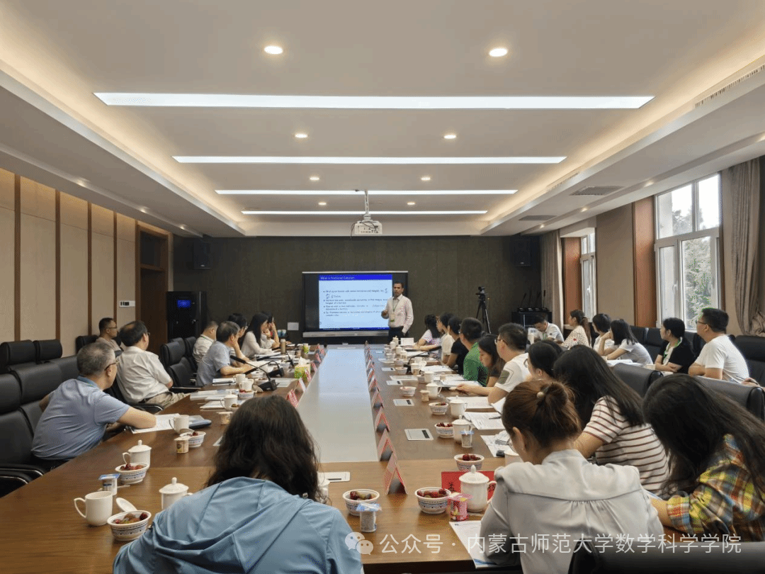 本次论坛共安排了10场专题学术报告,内容涵盖微分方程、数值计算、优化算法、数据科学等数学领域多个研究方向。报告者来自国内知名高校的青年学者,他们的研究成果兼具理论深度与应用价值。西北农林科技大学的韩呼和副教授以《Approximation of spherical convex bodies of constant width》为题,探讨了球面上凸体的逼近问题,为几何分析提供了新的思路。河海大学博士后Muhammad Aamir Ali介绍了非线性时间分数阶退化双曲方程的混合有限体积方法,为解决复杂数学问题提供了高效的计算工具。内蒙古师范大学师资博士后张宇则聚焦稀疏最优控制问题,提出了一种高效的DC型算法,为实际工程问题中的优化控制提供了新方法。浙江师范大学的韩鹏飞博士和内蒙古大学的李昊博士分别围绕耦合Hirota方程的反散射变换和大数据DEA模型的求解方法展开报告,展示了数学在物理与数据科学中的广泛应用。陕西师范大学的王志慧博士和浙江师范大学的张海燕博士分别从动态超边预测和Camassa-Holm方程的特征值问题出发,分享了他们在复杂网络与微分方程领域的最新研究成果。内蒙古师范大学的张露露博士以《弧度制在中国教材中的百年变迁》为题,从数学教育史的角度梳理了弧度制在中国的引入与发展,为数学教学研究提供了宝贵的历史视角。