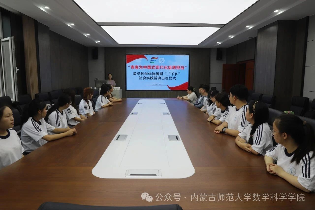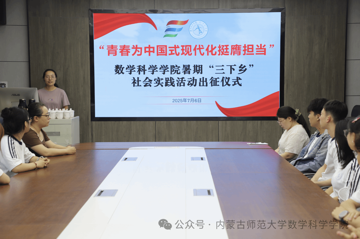 7月6日上午,数学科学华体会(中国)2025年暑期“三下乡”社会实践活动出征仪式在华体会(中国)楼会议室举行。团队带队教师刘沙沙、阿茹罕、萨如拉出席仪式,团队16名志愿者参加出征仪式。
