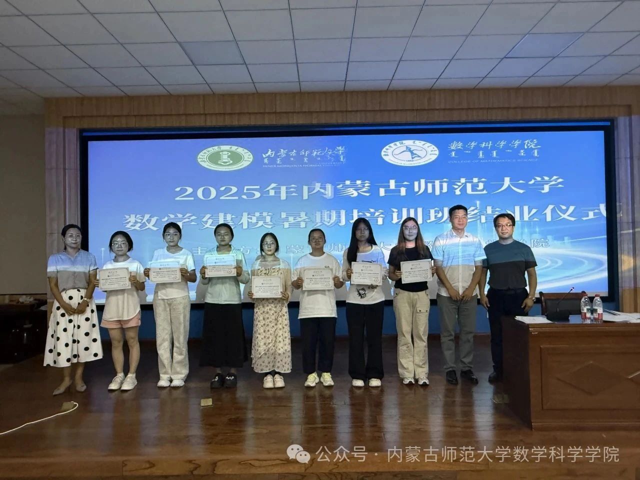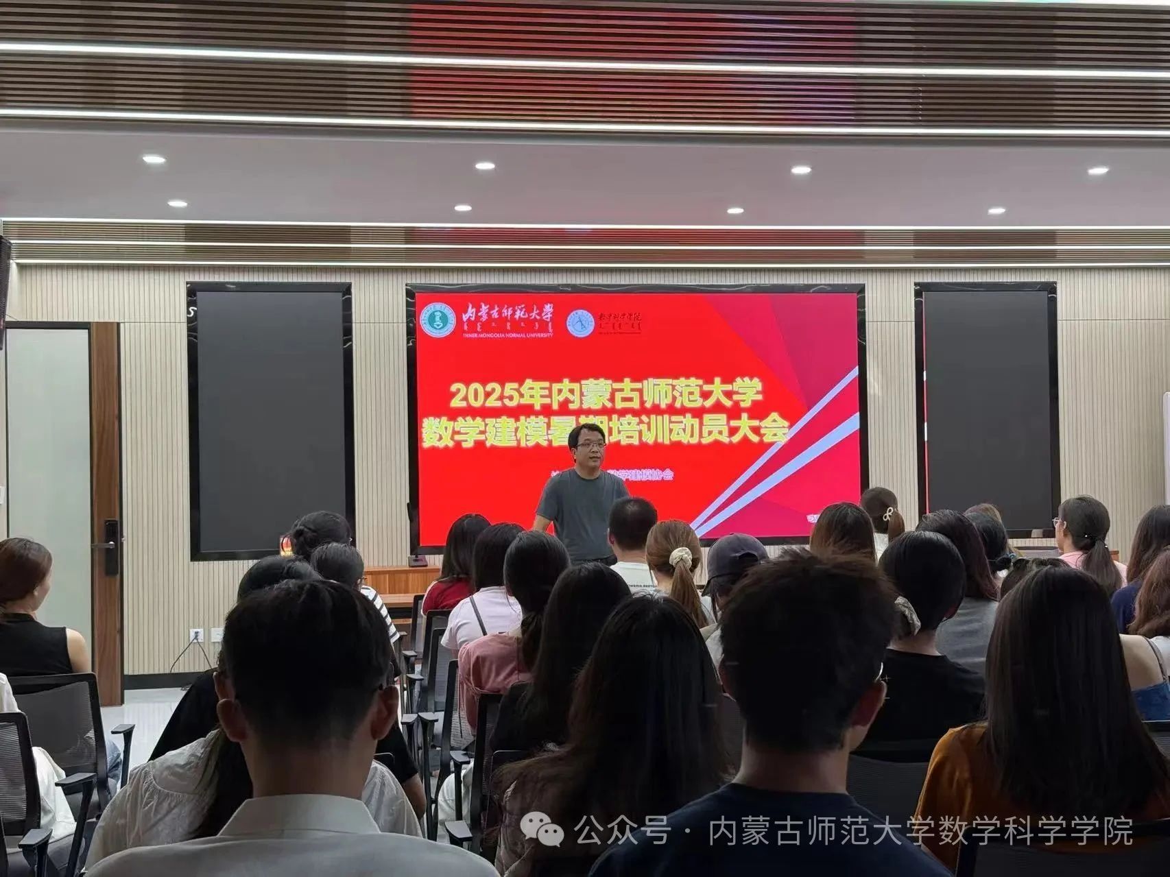 7月18日,由内蒙古师范大学教务处主办,数学科学华体会(中国)联合内蒙古应用数学中心、数学与应用数学专业教育部虚拟教研室共同承办的我校 2025年数学建模暑期集训圆满结束。本次集训为期十天(7月9日至18日),特邀 3 位在各自领域颇具影响力的国内知名专家授课,参训师生 140 余人。活动旨在响应高等教育实践育人改革方向,提升学生运用数学理论和方法解决实际问题的能力,为学生参加全国大学生数学建模竞赛、美国大学生数学建模竞赛等科创竞赛做好准备。