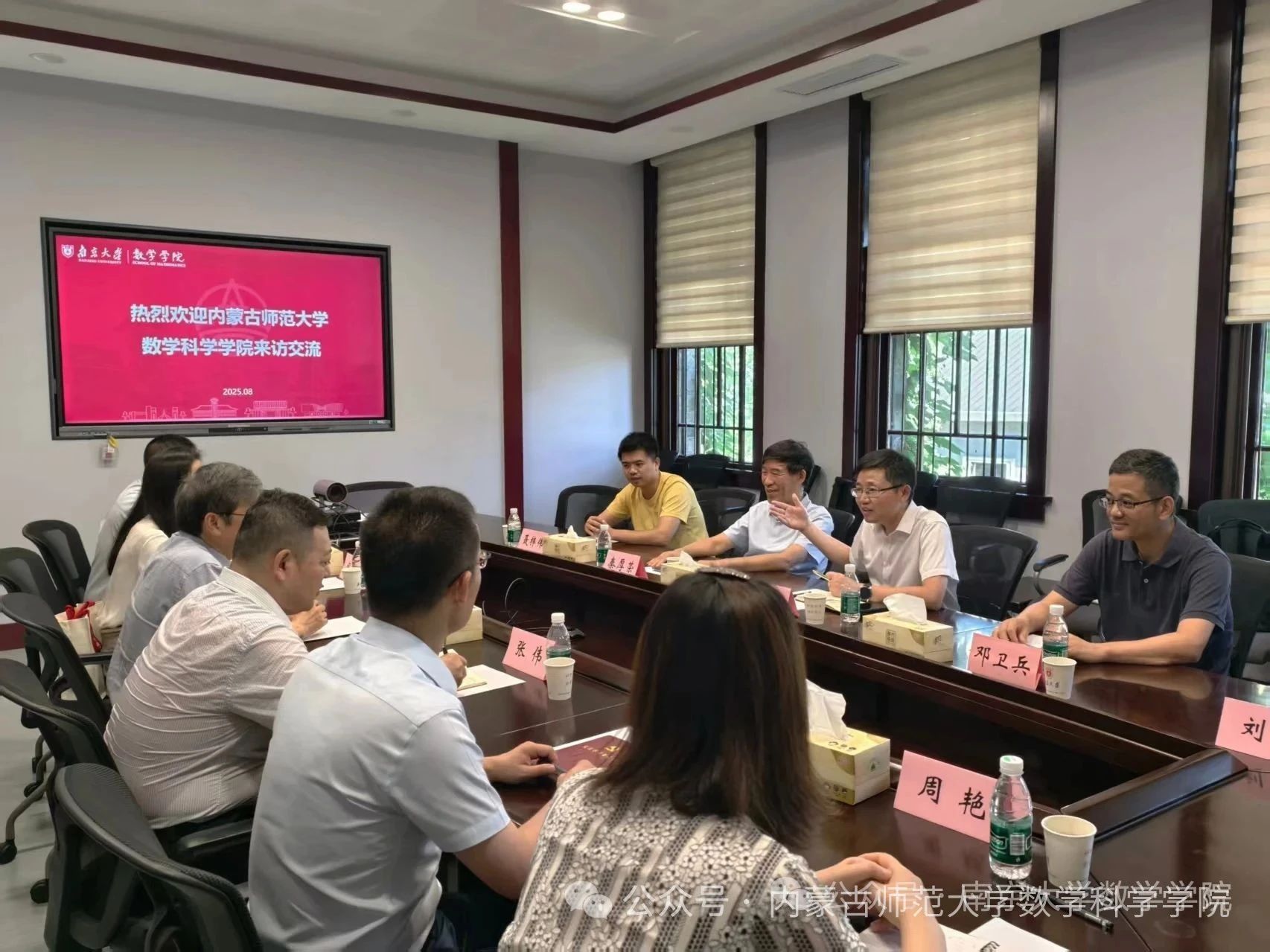 8月15日,在我校原党委书记、教育部重点实验室主任阿拉坦仓教授的带领下,华体会(中国)党委书记张伟、副院长包霞率领团队,赴南京大学数学华体会(中国)开展调研交流。调研团成员包括计算数学方向负责人布仁满都拉、应用数学方向负责人周艳、基础数学方向负责人耿俊。南京大学数学华体会(中国)党委书记刘公祥、江苏国家应用数学中心主任秦厚荣,优秀教师代表邓卫兵、青年教师聂梓伟、研究生秘书刘柳等热情接待了调研团一行。