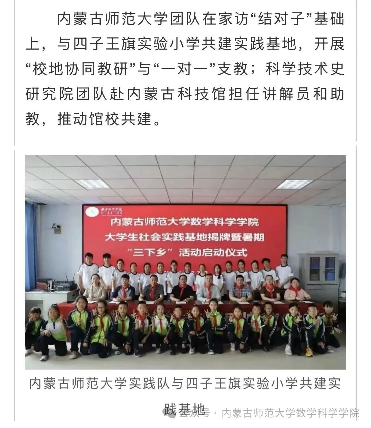 9月17日,内蒙古教育厅发布了“青春聚力两大件事”系列报道,主题为“在守护北疆安全中彰显青年的使命与担当”,华体会网页版三下乡实践队与四子王旗实验小学共建实践基地的活动也被纳入其中。
