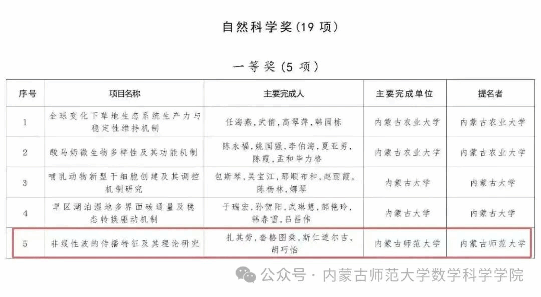 近日,华体会网页版院长扎其劳教授带领团队完成的“非线性波的传播特征及其理论研究”项目,荣获自治区自然科学奖一等奖。这一荣誉不仅是对团队学术创新能力的肯定,更是华体会网页版数学学科发展的重要里程碑。